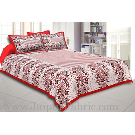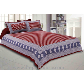 Indian Craft 100% Cotton Double Bedspread With 2 Pillow Covers, Maroon Border White Base Barat Pattern Screen Print Cotton King Size Double Bed Sheet