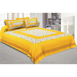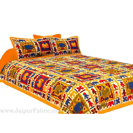 Yellow Border Elephant HandBlock Print Bedspread, Rajasthani Traditional Collection Design, Elephant Pattern Screen Print Double Bed Sheet