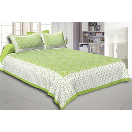 Indian Bird Green Print Beautiful Color Bedsheet, Pure Cotton 240 TC Bedspread, Bedding, Cotton Fabric Bird Print Bedsheet With Pillow Cover