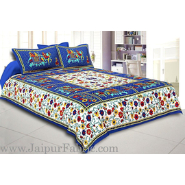 Blue Border Elephant HandBlock Print Bedspread, Rajasthani Traditional Collection Design, Elephant Pattern Screen Print Double Bed Sheet