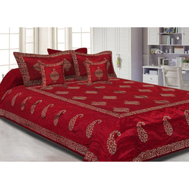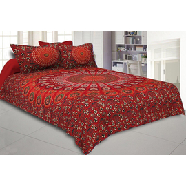 Indian Handemade Set Of 3 Crimson Red Mandala Bedsheet Tapestry Floral Print With 2 Pillow Covers, Bedding With Pillow Cover, 100% Cotton Bedsheet Throw