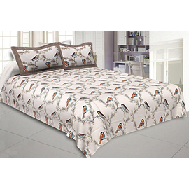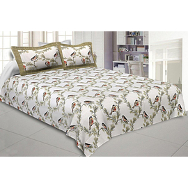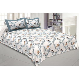 Indian Bird White Print Beautiful Color Bedsheet, Pure Cotton 240 TC Bedspread, Bedding, Cotton Fabric Bird Print Bedsheet With Pillow Cover