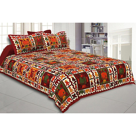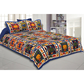 100% Pure Cotton 240 TC Double Bedsheet Spring Jungle King Size Double Bedsheet, 2 Pillow Covers, Indian Bedsheet, Cotton Double Bedsheet