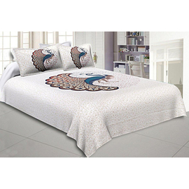 Beautiful Dancing Peacock Twill Cotton Printed Bedsheet, King Size Set, Bedspread With Two Pillow Cover, Double Bed Cotton Bedsheet With Peacock Printed