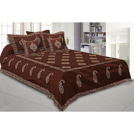 King Size Bedsheet Brown Paisly Khadi Print Bedsheet, Indian Bedsheet, Home decor Silk Double Bedsheet, Brown Base Khadi Print Hand Work Double Bed Sheet