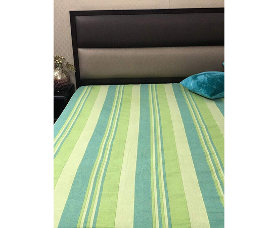 Striped Pattern Bed sheet - Bed cover - Bed Linen - Handwoven bed sheet with Pillow Covers - King Size - Khadi Cotton Green Color Bed Spread 102 inch x 90 inch