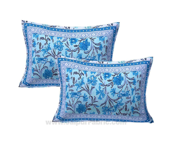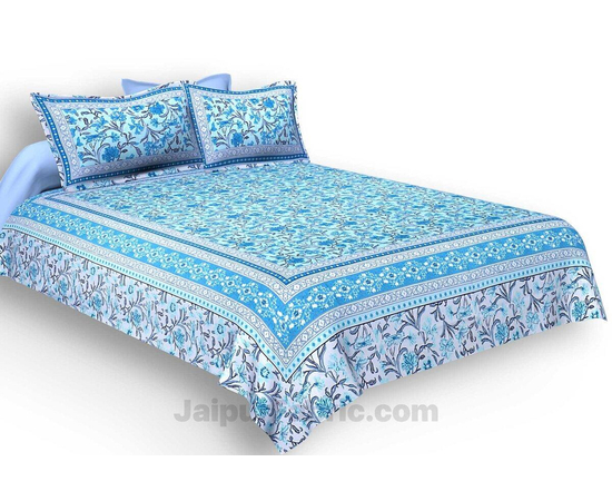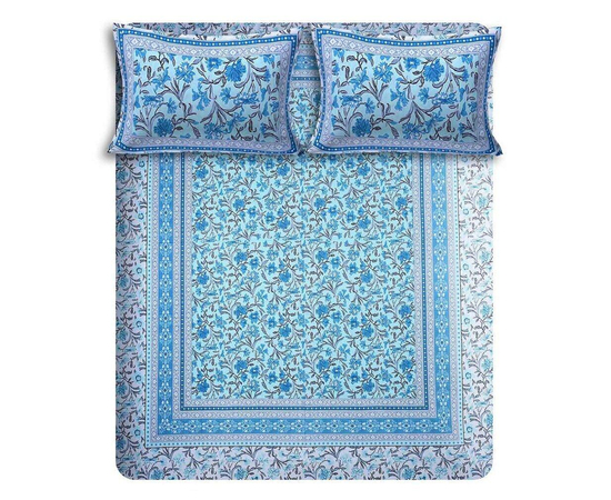 Awesome leaves Blue Cream Double Bedsheet Pillow Covers, Indian Bedsheet, Home Decor Cotton Bedsheet