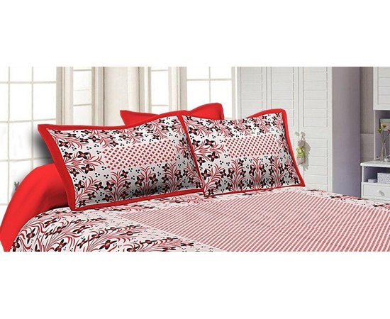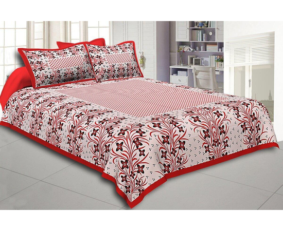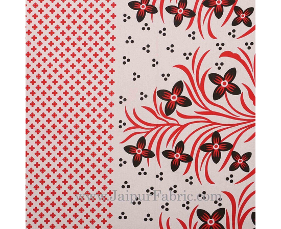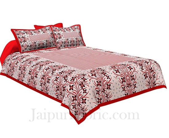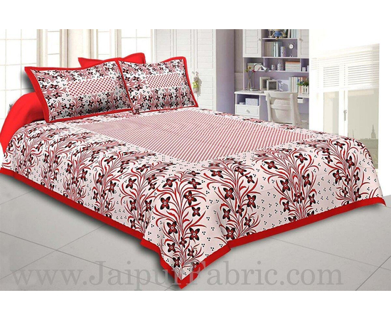Red Border White Base Red and Black Flower and Leaf Pattern Coton Double Bedsheet HandMade Jaipuri / Indian Handmade 100% Cotton Rajasthani Bedsheet Double Bed Set