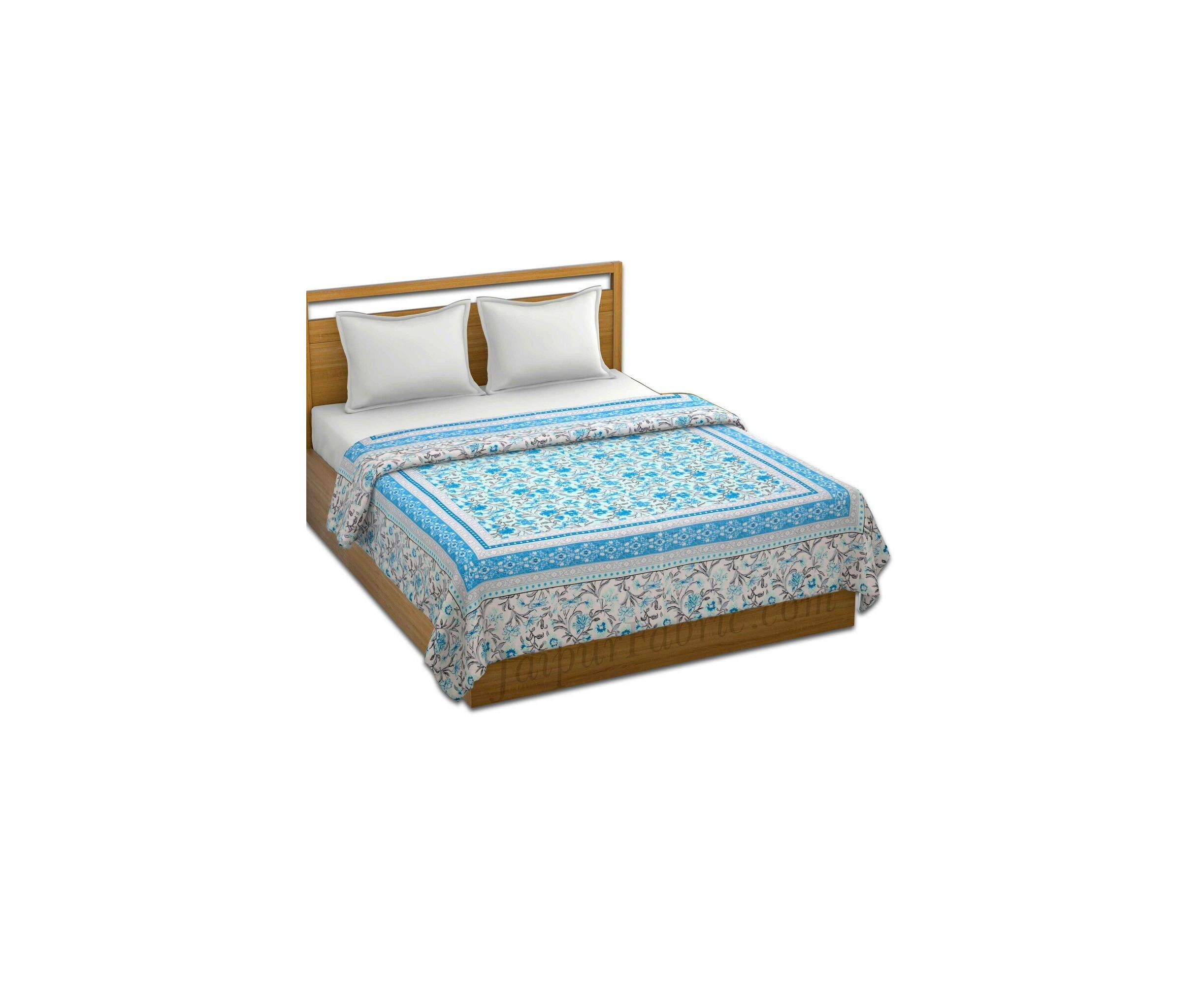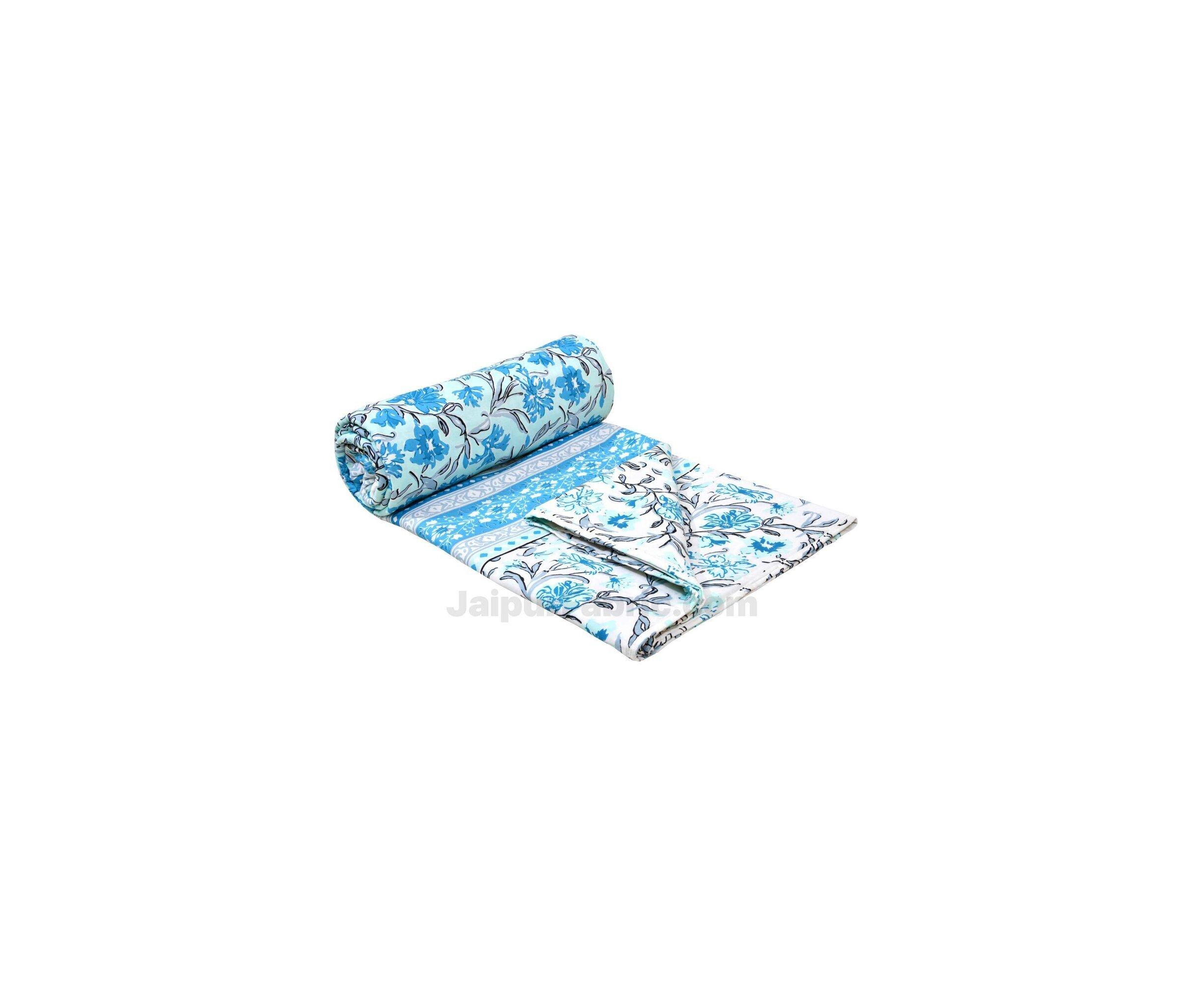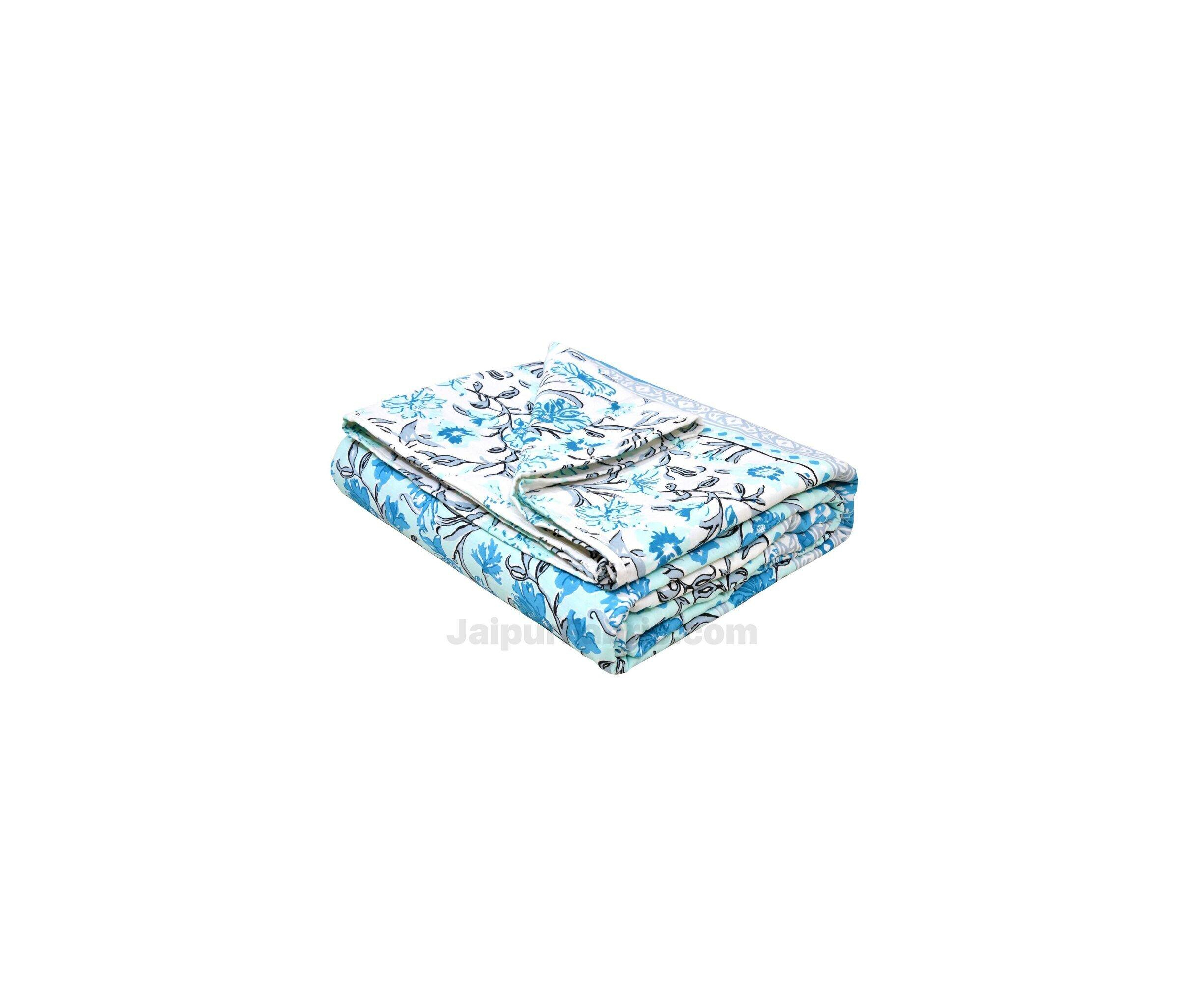 Combo374 Bed in a Bag Blue Leaves 1 Dohar + 1 Double BedSheet + 2 Pillow Covers