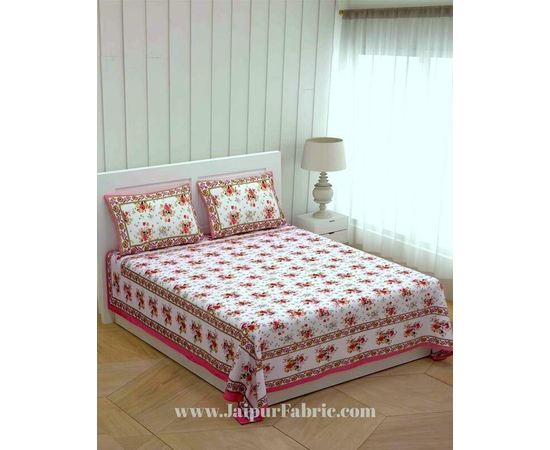 Pink Bunch of Flowers Double Bedsheet 2 Pillow Cover Bed Throw Bedding Cover