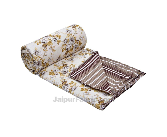 Indian Hand Print Cotton Reversible Soft Dohar Bed sheet Flowers Bunch Brown Cotton Soft Touch Reversible Double Bed Dohar/Blanket /Bedspread Throw Floral Printed AC Blanket