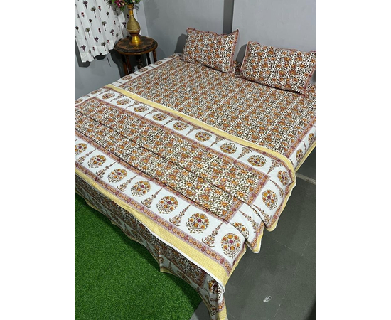 Handmade Jaipuri Block-Printed Bed Sheet with 2 Pillow Covers + Dohar | Combo Set for Home Decor