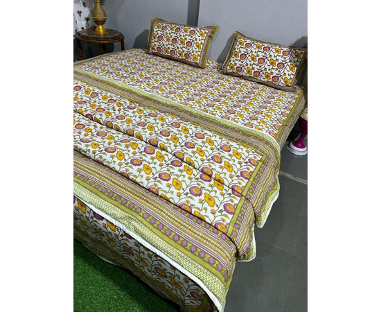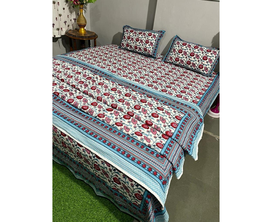 Handmade Jaipuri Block Printed Double Bed Sheet With 2 Pillow Covers + With Dohar | Combo Set for Home Decor