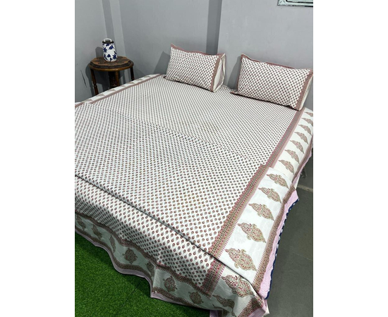 Handmade Jaipuri Hand Block Floral Printed Cotton King Size Bedsheet + Pillow Cover With Dohar Combo Set