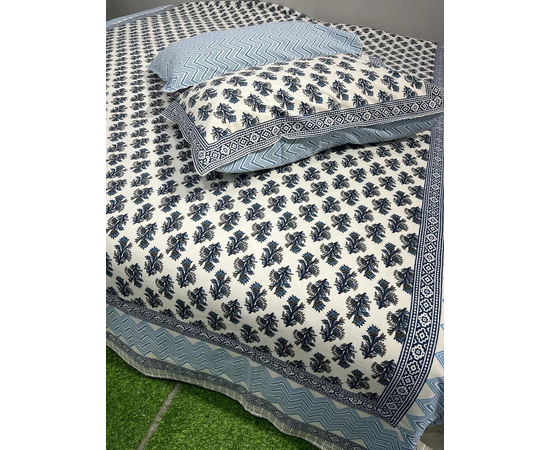 Surprisingly soft for being so budget-friendly, this Jaipuri bedsheet set adds a wonderful dose of coziness to any well-made bed. The silky-soft sheet set makes a nice choice for a bedroom, guest room, college dorm room, hotels, and especially for just-moved-in new apartments. We spend one-third of our day on our beds hence the touch of the sheet to the skin is very important. Finished with Anti-bacterial and Anti-Fungal, breathable twill cotton fabric, these sheets provide the healthy comfort your body needs at night. Not to mention in the day when you see it so prettily spread on the bed gives you that positive and uplifting vibe to your mood all day long. It's Time to surround yourself with this beautiful organic bed sheet.