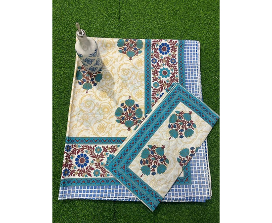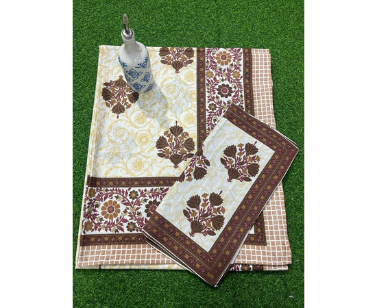 Surprisingly soft for being so budget-friendly, this Jaipuri bedsheet set adds a wonderful dose of coziness to any well-made bed. The silky-soft sheet set makes a nice choice for a bedroom, guest room, college dorm room, hotels, and especially for just-moved-in new apartments. We spend one-third of our day on our beds hence the touch of the sheet to the skin is very important. Finished with Anti-bacterial and Anti-Fungal, breathable twill cotton fabric, these sheets provide the healthy comfort your body needs at night. Not to mention in the day when you see it so prettily spread on the bed gives you that positive and uplifting vibe to your mood all day long. It's Time to surround yourself with this beautiful organic bed sheet.