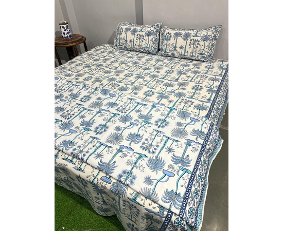 Handmade Rajasthani Block Print Double Bedsheet + Pillow Cover With Dohar Combo Set | Tree Print Double Cotton Bed Sheet