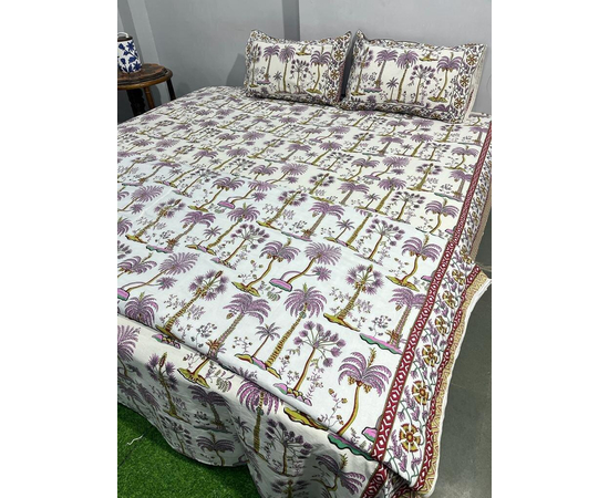 Handmade Rajasthani Block Print Double Bedsheet + Pillow Cover With Dohar Combo Set | Tree Print Double Cotton Bed Sheet