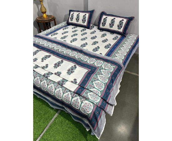 Handmade Rajasthani Jaipuri Block Printed Double Bed Sheet With 2 Pillow Covers + With Dohar Combo Set