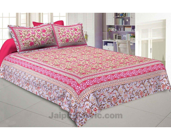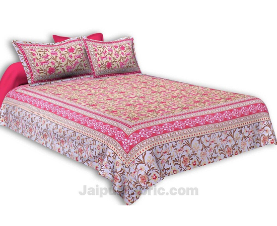 Awesome leaves Pink Cream Double Bedsheet Double Bedsheet, Pillow Covers, Indian Bedsheet, Home Decor Cotton Bedsheet