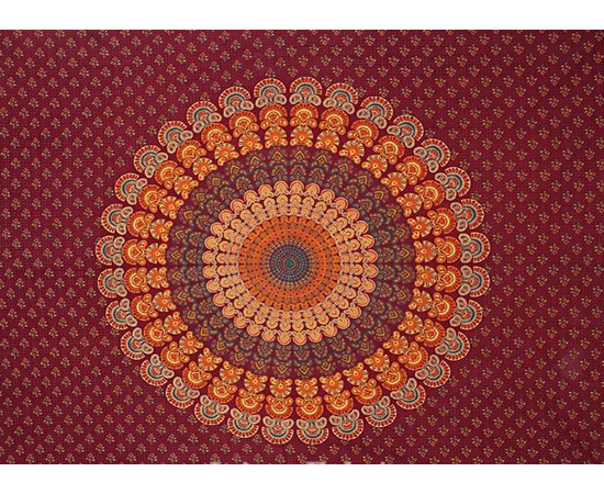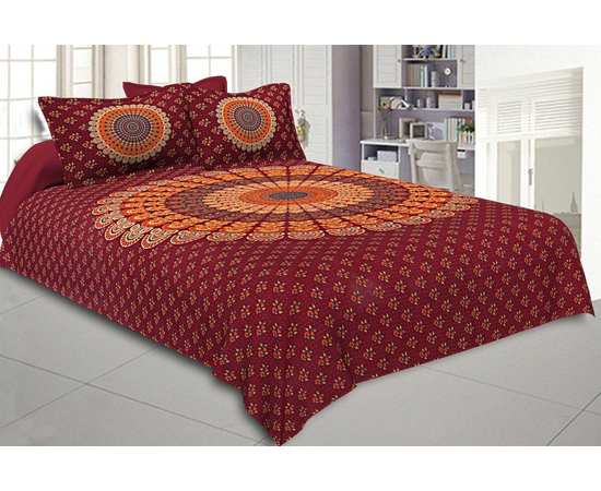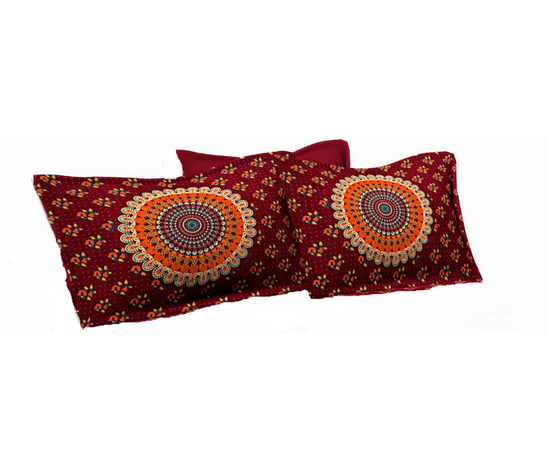 Indian Handemade Set Of 3 Crimson Red Mandala Bedsheet Tapestry Floral Print With 2 Pillow Covers, Bedding With Pillow Cover, 100% Cotton Bedsheet Throw