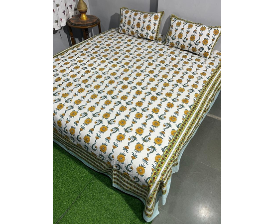 Surprisingly soft for being so budget-friendly, this Jaipuri bedsheet set adds a wonderful dose of coziness to any well-made bed. The silky-soft sheet set makes a nice choice for a bedroom, guest room, college dorm room, hotels, and especially for just-moved-in new apartments. We spend one-third of our day on our beds hence the touch of the sheet to the skin is very important. Finished with Anti-bacterial and Anti-Fungal, breathable twill cotton fabric, these sheets provide the healthy comfort your body needs at night. Not to mention in the day when you see it so prettily spread on the bed gives you that positive and uplifting vibe to your mood all day long. It's Time to surround yourself with this beautiful organic bed sheet.