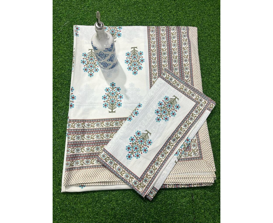 Surprisingly soft for being so budget-friendly, this Jaipuri bedsheet set adds a wonderful dose of coziness to any well-made bed. The silky-soft sheet set makes a nice choice for a bedroom, guest room, college dorm room, hotels, and especially for just-moved-in new apartments. We spend one-third of our day on our beds hence the touch of the sheet to the skin is very important. Finished with Anti-bacterial and Anti-Fungal, breathable twill cotton fabric, these sheets provide the healthy comfort your body needs at night. Not to mention in the day when you see it so prettily spread on the bed gives you that positive and uplifting vibe to your mood all day long. It's Time to surround yourself with this beautiful organic bed sheet.