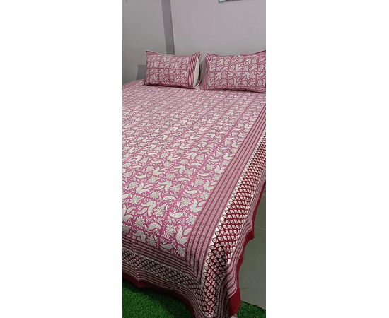 Indian Jaipuri Hand Block Printed Mugal Design Double Bedsheet King Size with 2 Pillow Covers for bedroom decor