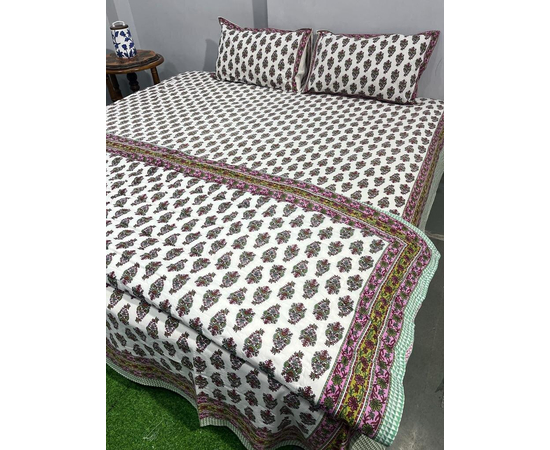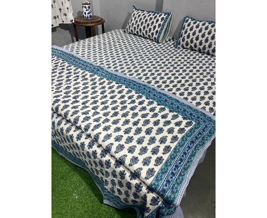 Jaipuri Block Print Double Bedsheet + Pillow Cover With Dohar Combo Set | Boota & Floral Print Double Cotton Bed Sheet
