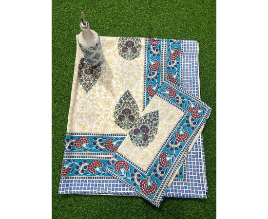 Surprisingly soft for being so budget-friendly, this Jaipuri bedsheet set adds a wonderful dose of coziness to any well-made bed. The silky-soft sheet set makes a nice choice for a bedroom, guest room, college dorm room, hotels, and especially for just-moved-in new apartments. We spend one-third of our day on our beds hence the touch of the sheet to the skin is very important. Finished with Anti-bacterial and Anti-Fungal, breathable twill cotton fabric, these sheets provide the healthy comfort your body needs at night. Not to mention in the day when you see it so prettily spread on the bed gives you that positive and uplifting vibe to your mood all day long. It's Time to surround yourself with this beautiful organic bed sheet.