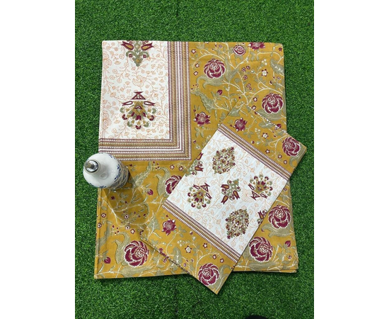 Jaipuri Hand Block printed king-size double bed sheet 100% Pure and refined cotton used. 3 Pcs set ( one bedsheet + 2 pillow covers )
