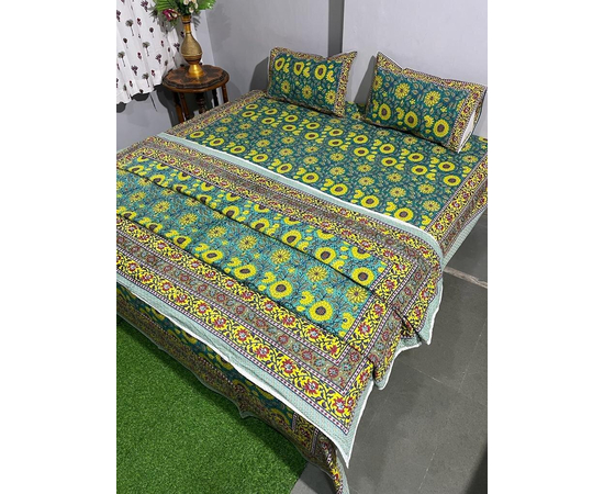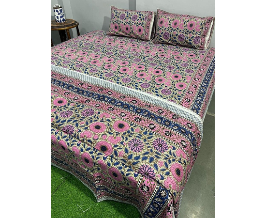 New Collection Rajasthani Jaipuri Handmade 100% Pure Cotton Floral Print Double Bedsheet + Pillow Cover With Dohar Combo Set