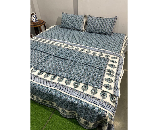 Surprisingly soft for being so budget-friendly, this Jaipuri bedsheet set adds a wonderful dose of coziness to any well-made bed. The silky-soft sheet set makes a nice choice for a bedroom, guest room, college dorm room, hotels, and especially for just-moved-in new apartments. We spend one-third of our day on our beds hence the touch of the sheet to the skin is very important. Finished with Anti-bacterial and Anti-Fungal, breathable twill cotton fabric, these sheets provide the healthy comfort your body needs at night. Not to mention in the day when you see it so prettily spread on the bed gives you that positive and uplifting vibe to your mood all day long. It's Time to surround yourself with this beautiful organic bed sheet.