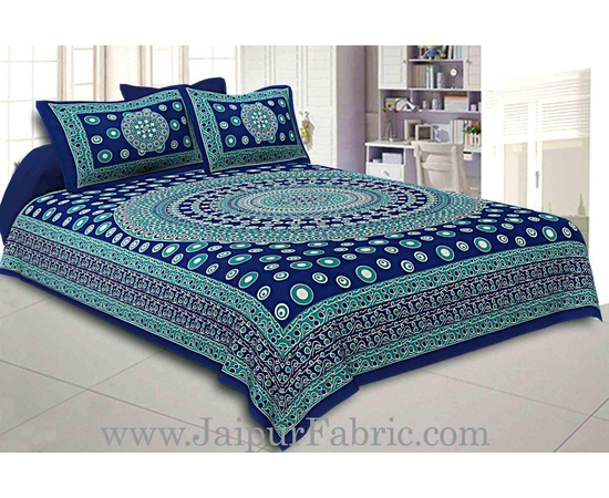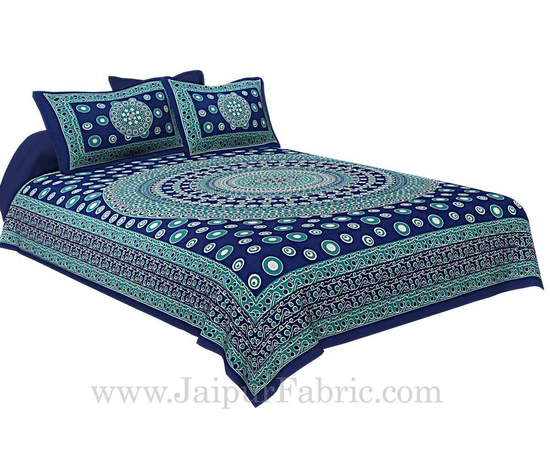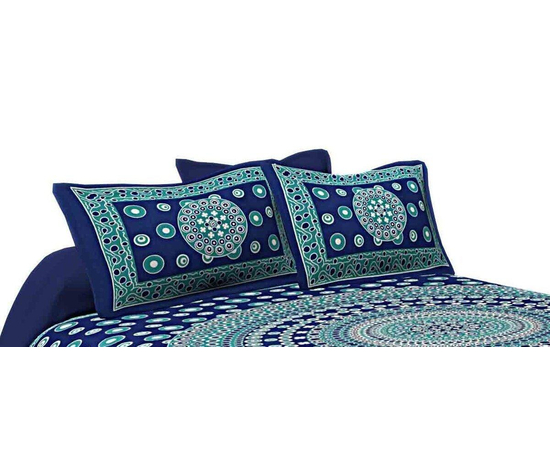Double bedsheet Blue Color Rangoli Pattern Smooth Touch With 2 Pillow Cover Bedspread | 100% Cotton Bed Linens Rangoli Pattern