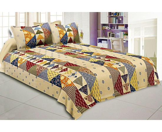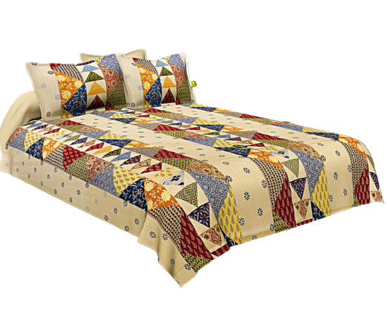 This beautiful pastel color bedsheet set comes with applique artwork on it that has emerged from the Barmer District of Rajasthan. The exquisite printed patchwork pattern design finished with an excellent stitch makes this bed sheet a must-have for your bedroom. The gorgeous multi-color barmeri print bedsheets will easily match any room decor – whether it is modern, chic, contemporary, vintage, or others. The bedsheet has a smooth finish and is light in weight and can be used on a daily basis.