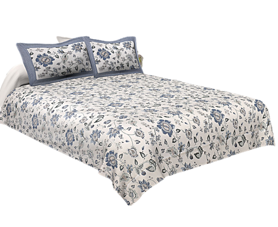 Pure Cotton Print Bedsheet Set, Cotton Blueish Floral Pattern Flat Bedsheet Natural Material Bedding Set, Floral Design Bedroom Decor