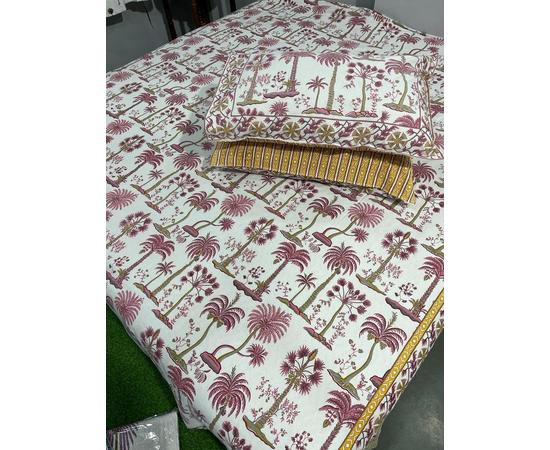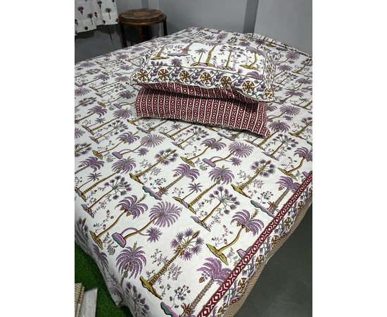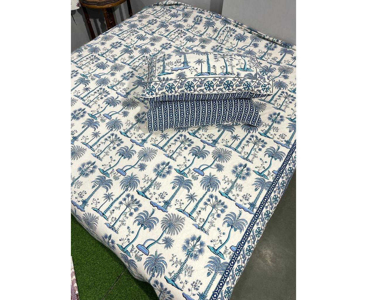 Indian Traditional Hand Block Printed Bedsheet | Jaipuri Hand Block Printed Tree Design Double Bedsheet King Size with 2 Pillow Covers