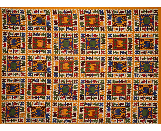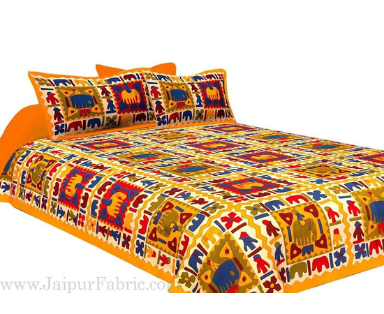 Yellow Border Elephant HandBlock Print Bedspread, Rajasthani Traditional Collection Design, Elephant Pattern Screen Print Double Bed Sheet