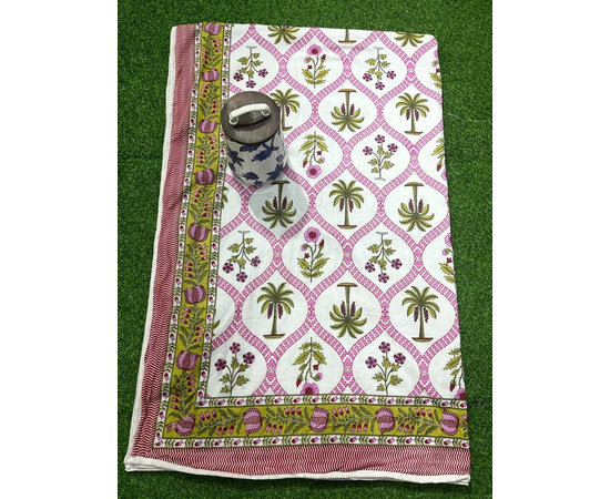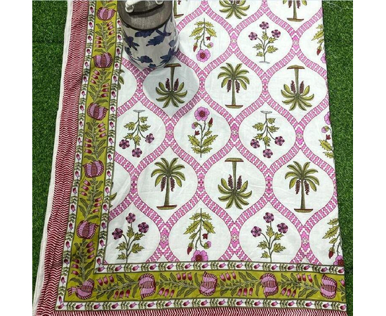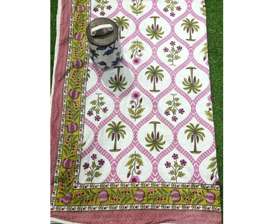 Handmade Cotton Dohar Floral Print /Jaipuri Soft Dohar/ single Bed Hand Block Printed Winter Blanket (60x90)