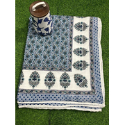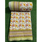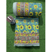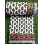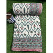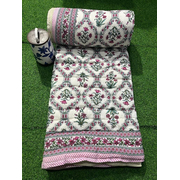 Indian Handmade Dohar Comforter, Quilt Bedspread, Hand Quilted Comforter, Jaipur Famous Cotton Modern Floral Block Print