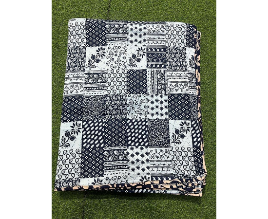 This is a famous handmade quilt. This quilt is made with hand-stitched kantha work. Kantha is a popular form of embroidery practiced by rural women. We use cotton fabric layers outside and cotton filling inside it. This comfortable soft Indian quilt with Indian traditional print is perfect for all weather.
