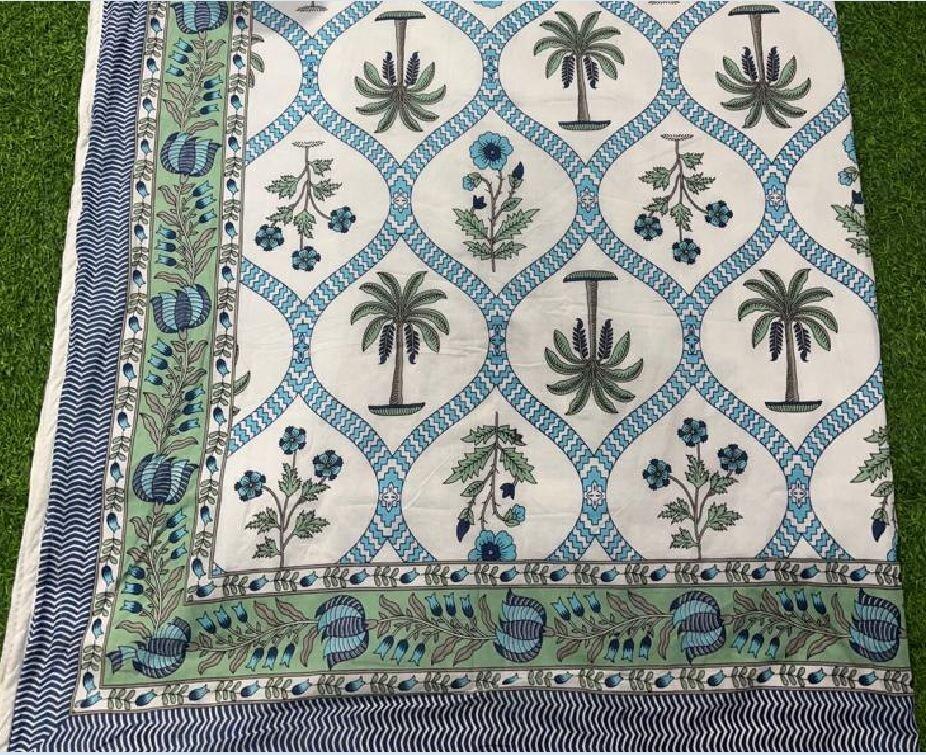 Indian Handmade Single Bed Cotton Dohar / Hand Block Printed Winter Blanket (60x90)