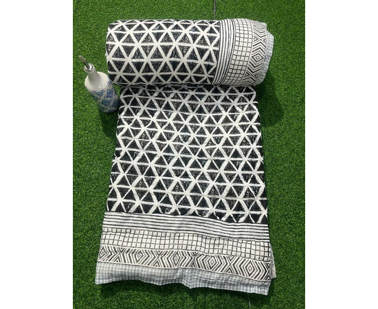This is a famous Jaipuri handmade quilt. This quilt is made with Machine-stitched work. Kantha is a popular form of embroidery practiced by rural women. We use cotton fabric layers outside and cotton filling inside it. This comfortable soft Indian quilt with indian traditional print is perfect for all weather.