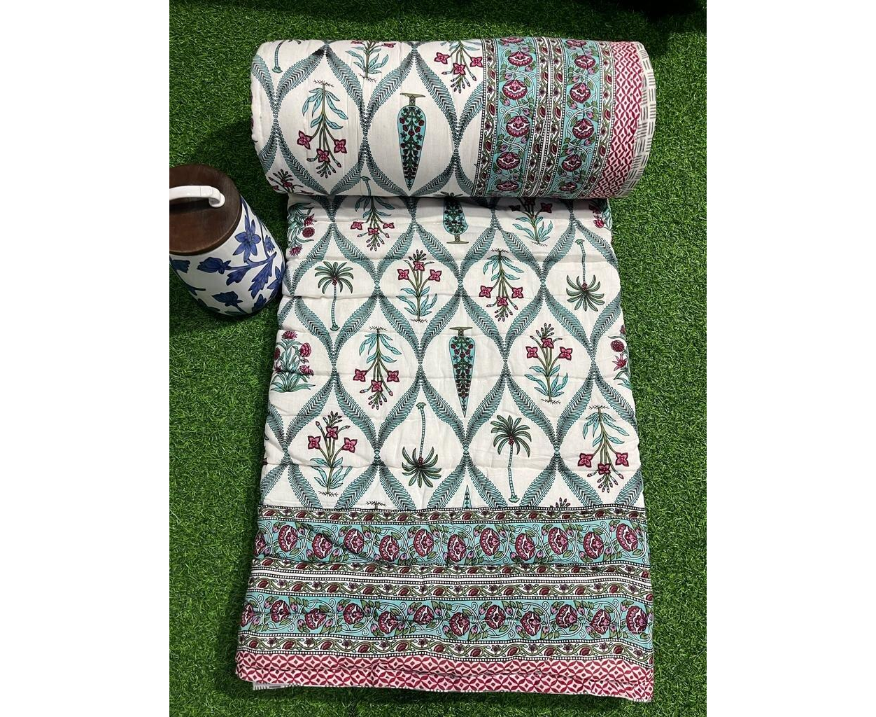 Indian Jaipuri Block Print Quilt Printed Reversible Razai Cotton Handmade Floral Quilt, Jaipuri razai, Bedspread Comforter, Kantha Quilt