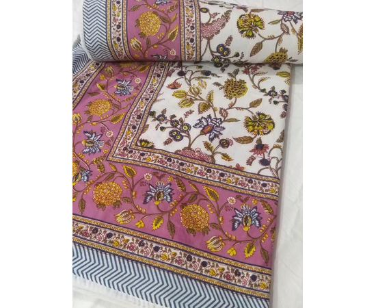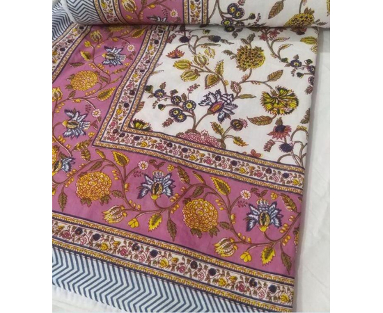 Indian Reversible Cotton Dohar, Hand Block Printed Cotton Dohar, Soft Cotton Dohar, King Size Dohar, Pink Kantha Dohar