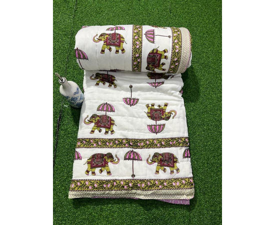 Indian Reversible Elephant Printed Quilts/Jaipuri Razai/Soft Quilt/Hand Block Print Quilt /Jaipuri Famous Quilt/King Size Quilt