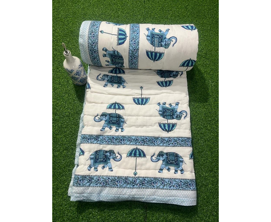 Indian Reversible Elephant Printed Quilts/Jaipuri Razai/Soft Quilt/Hand Block Print Quilt /Jaipuri Famous Quilt/King Size Quilt