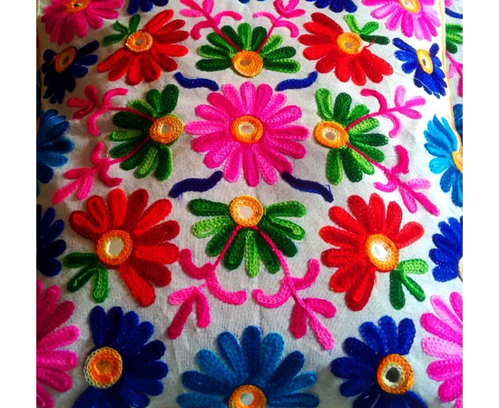Mirror embroidery is a true reflection of the Rajasthani culture and is believed to have originated in Persia and later entered India through the Mughal Empire. The craftsmen in Rajasthan use pieces of mirrors, usually round in shape which are embroidered into pieces of cloths to render a beautiful look to the fabric. The patterns are first traced on the cloth and later the craftsmen do the embroidery using the tracing marks. The embroidery is done using beautiful threads which adds to the grace of the cushion cover. These are suitable to be used on sofas, couches, beds, in the lounges etc. By adding these to your home decor you will bring a feel of Rajasthani Culture to your home. The stylish cushion cover is 40 x 40 cm (16x16 Inches) in size and can fit a cushion of size 15 to 17 inches.