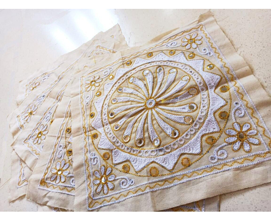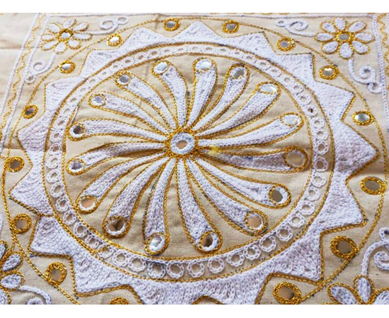 CREAM BASE WHITE GOLDEN COLOUR Cotton material Thread woolen Washable 5 PIECE SET CUSHION COVERS