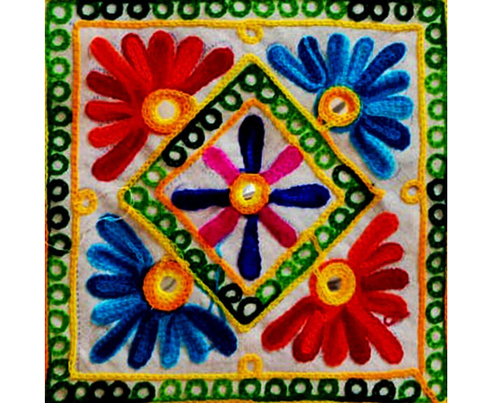 Mirror embroidery is a true reflection of the Rajasthani culture and is believed to have originated in Persia and later entered India through the Mughal Empire. The craftsmen in Rajasthan use pieces of mirrors, usually round in shape which are embroidered into pieces of cloths to render a beautiful look to the fabric. The patterns are first traced on the cloth and later the craftsmen do the embroidery using the tracing marks. The embroidery is done using beautiful threads which adds to the grace of the cushion cover. These are suitable to be used on sofas, couches, beds, in the lounges etc. By adding these to your home decor you will bring a feel of Rajasthani Culture to your home. The stylish cushion cover is 40 x 40 cm (16x16 Inches) in size and can fit a cushion of size 15 to 17 inches.
